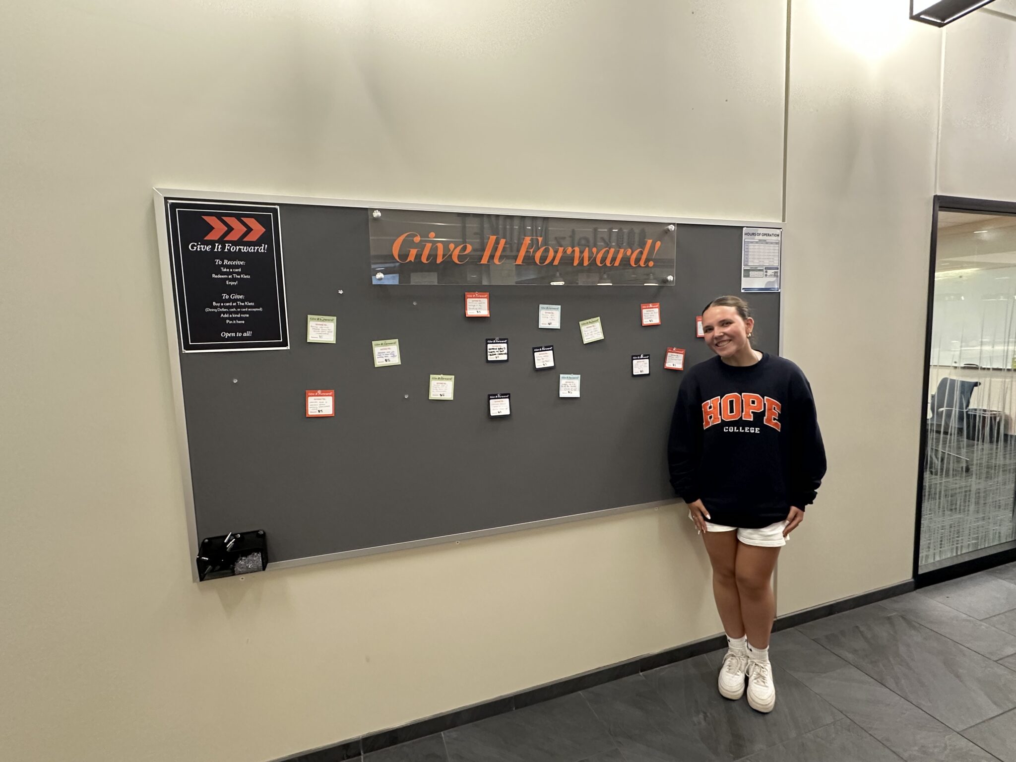 To help bring the vision of Hope Forward to life across campus, the Give-It-Forward Board was created in spring 2025 as a simple, meaningful way for the Hope community to practice everyday generosity.