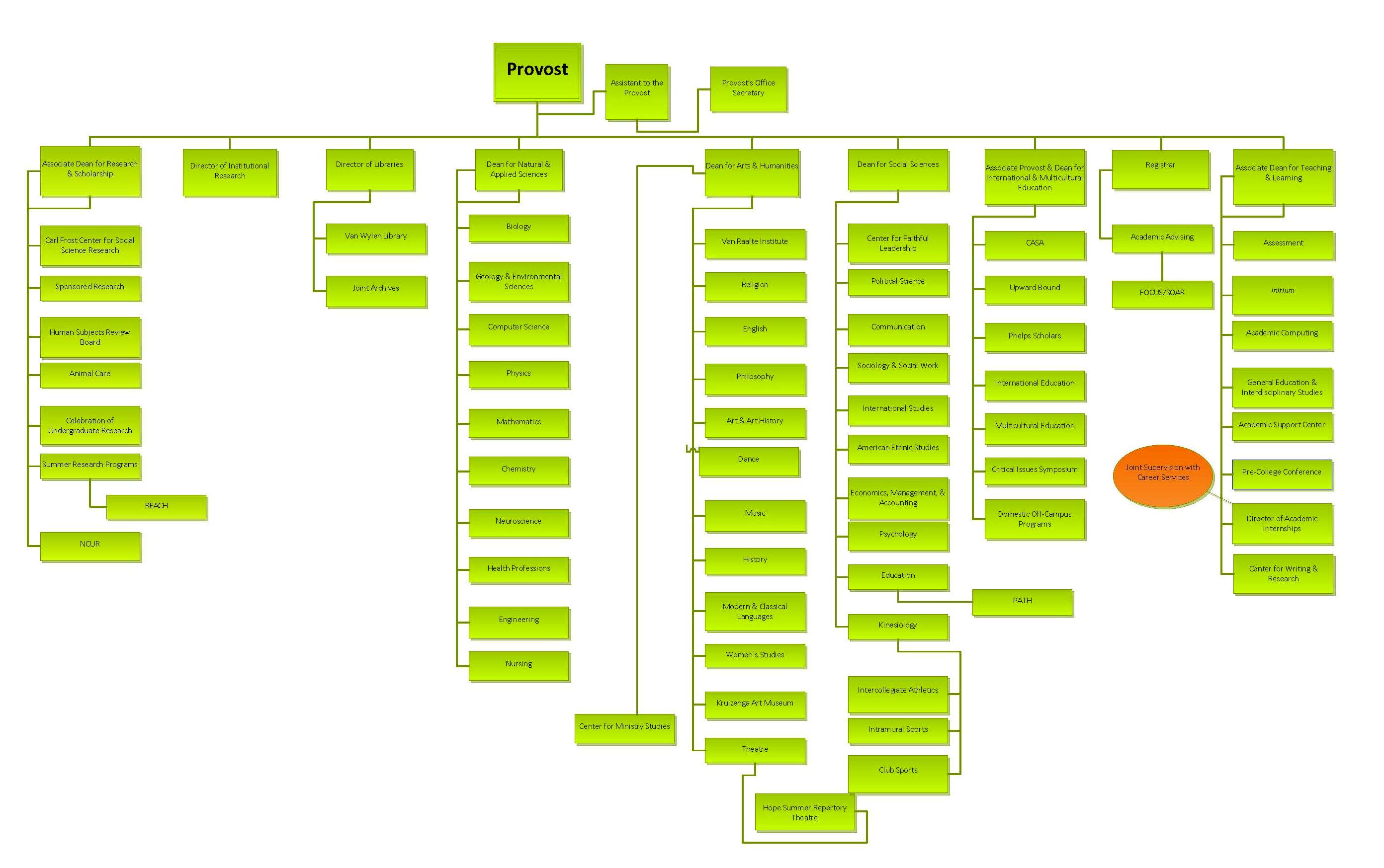 The First Year Seminar Director, Director of Academic Advising, and Director of the Center for Leadership work within the Boerigter Center for Calling and Career, allowing the center’s work to bridge academic and co-curricular spaces. The center’s Executive Director serves on the Dean’s Council and reports to the Provost.