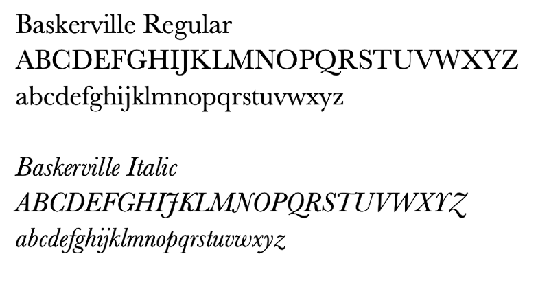 The primary typeface for body copy and text on letterhead is Baskerville. It can also be used as a callout. Baskerville is a serif typeface and provides balance to the more rigid geometric typeface.