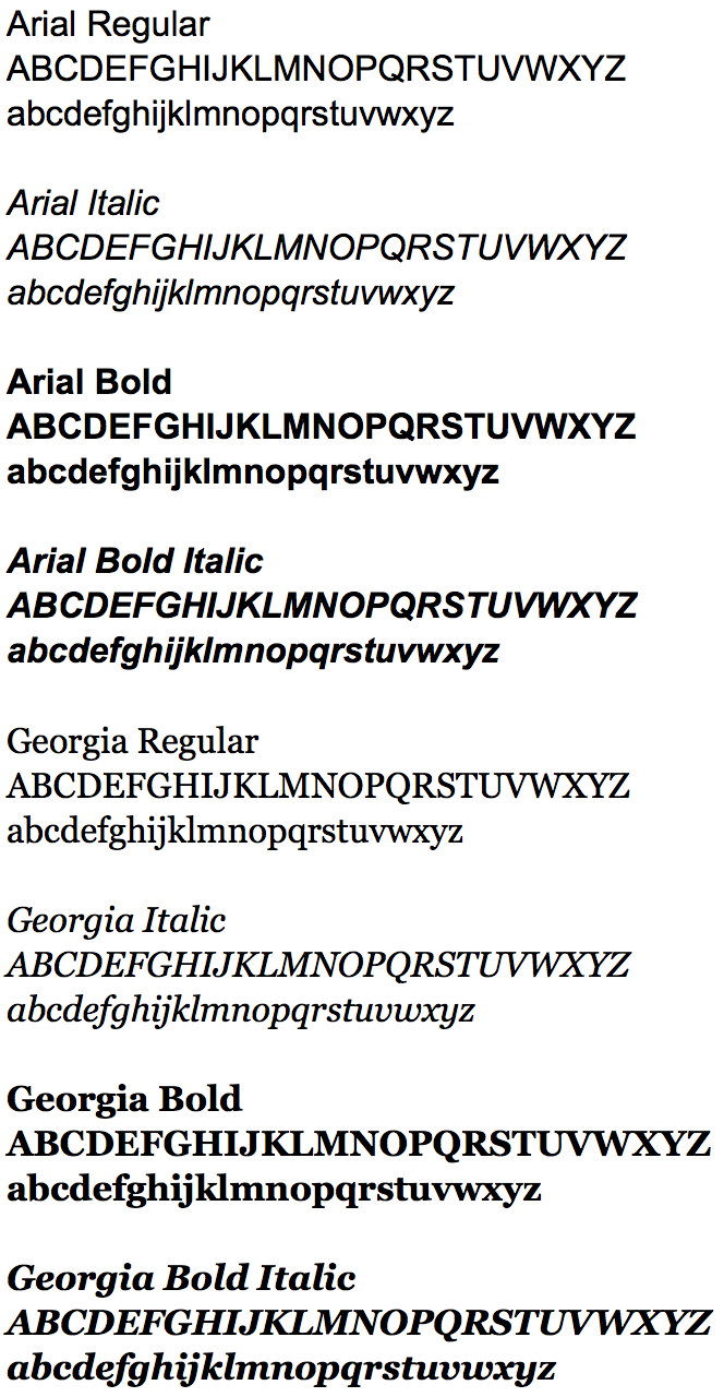 As the number of standard web fonts is limited and not all computers have the brand fonts installed, two substitute typefaces have been chosen for Hope College: Arial and Georgia. Arial is a sans serif substitute for Verlag and Georgia is a serif substitute for Clarendon and Baskerville. These versions are to be used for digital applications such as website, email, and e-news content and only when absolutely neccessary in print when primary brand fonts are not available.